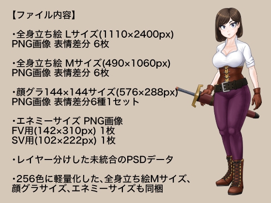 ■256色に軽量化した、全身立ち絵Mサイズ、顔グラサイズ、エネミーサイズも同梱