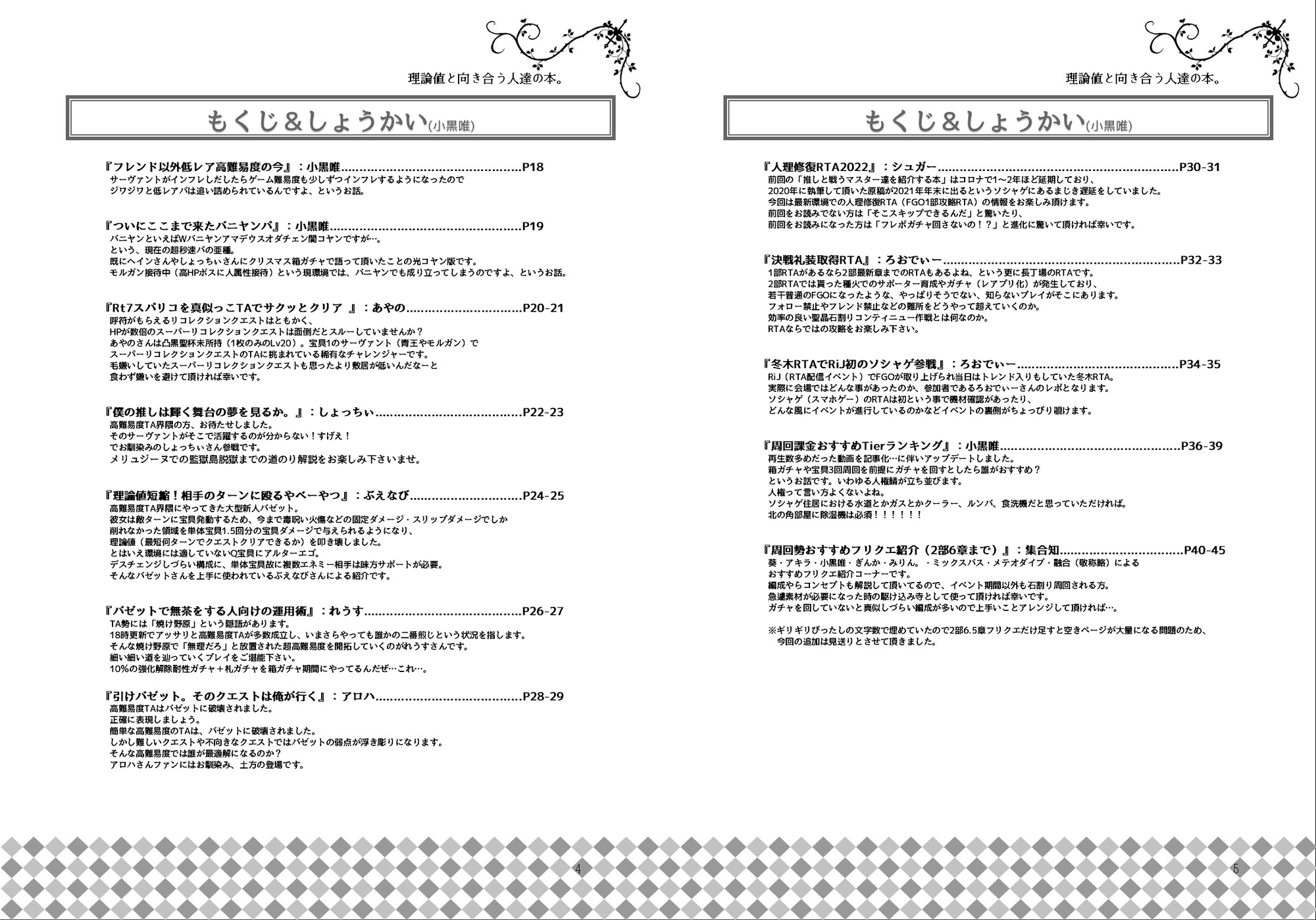 そんなFGOの理論値と向き合うマスター達の投稿が多めのFGO攻略同人誌です。