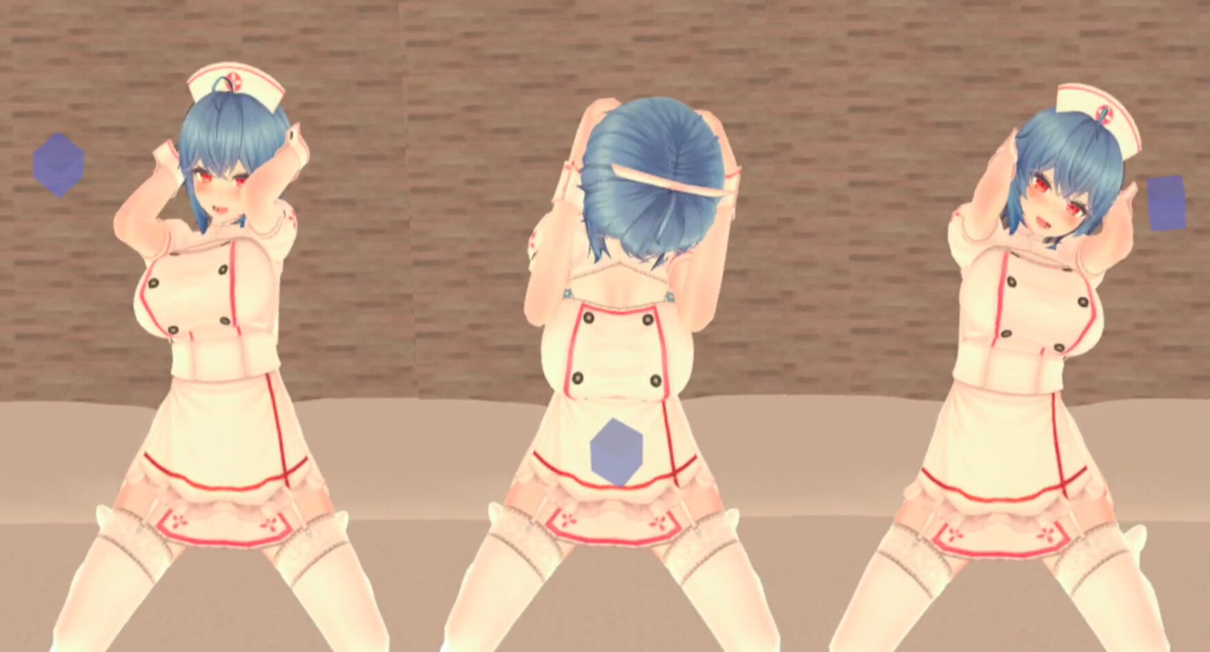 The hand tracking function allows the user to touch the bust, hair, cat ears, and tail.