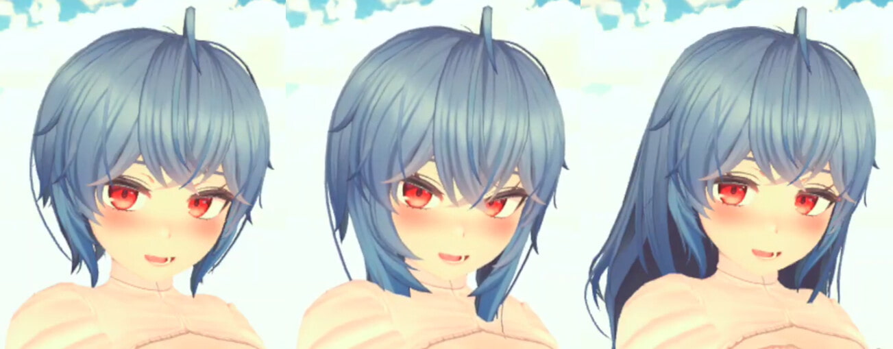 A wide variety of parameters such as hairstyle, costume, bust size and flexibility, body size, voice pitch, etc. can be freely set from a huge menu on the VR.