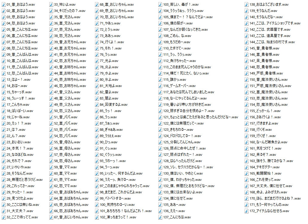 ボーイッシュ、少年系キャラクターボイスで、RPGなどに使えるゲーム向けセリフを多数収録しています。