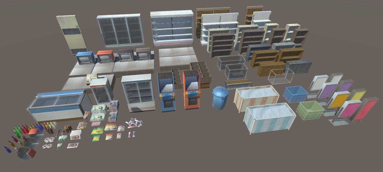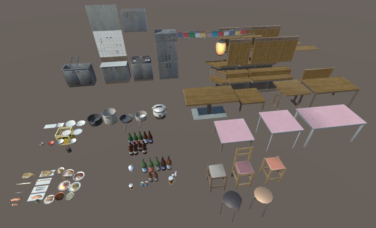 店内小物追加。喫茶店、洋服店、クリーニング屋、魚屋のサンプルシーン追加