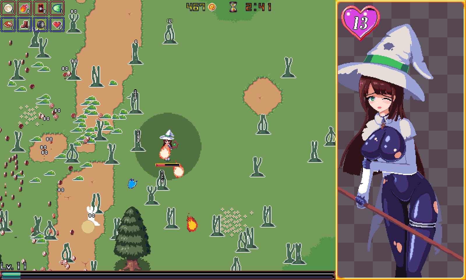 某サバイバーライクなゲーム 迫りくる敵を倒し、経験値を稼ぐことで攻撃用の魔法やパッシブスキルを習得していく。 無事、指定時間生き残れるか! (画像は開発中のものです。製品版では変わる可能性があります。)