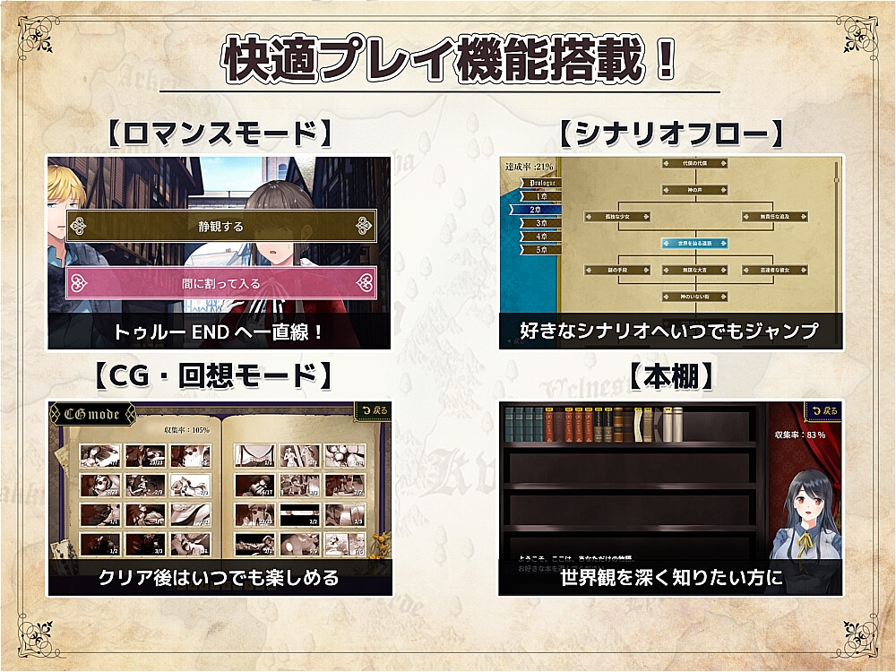 ADVとして快適にプレイするための機能を多数搭載しています。