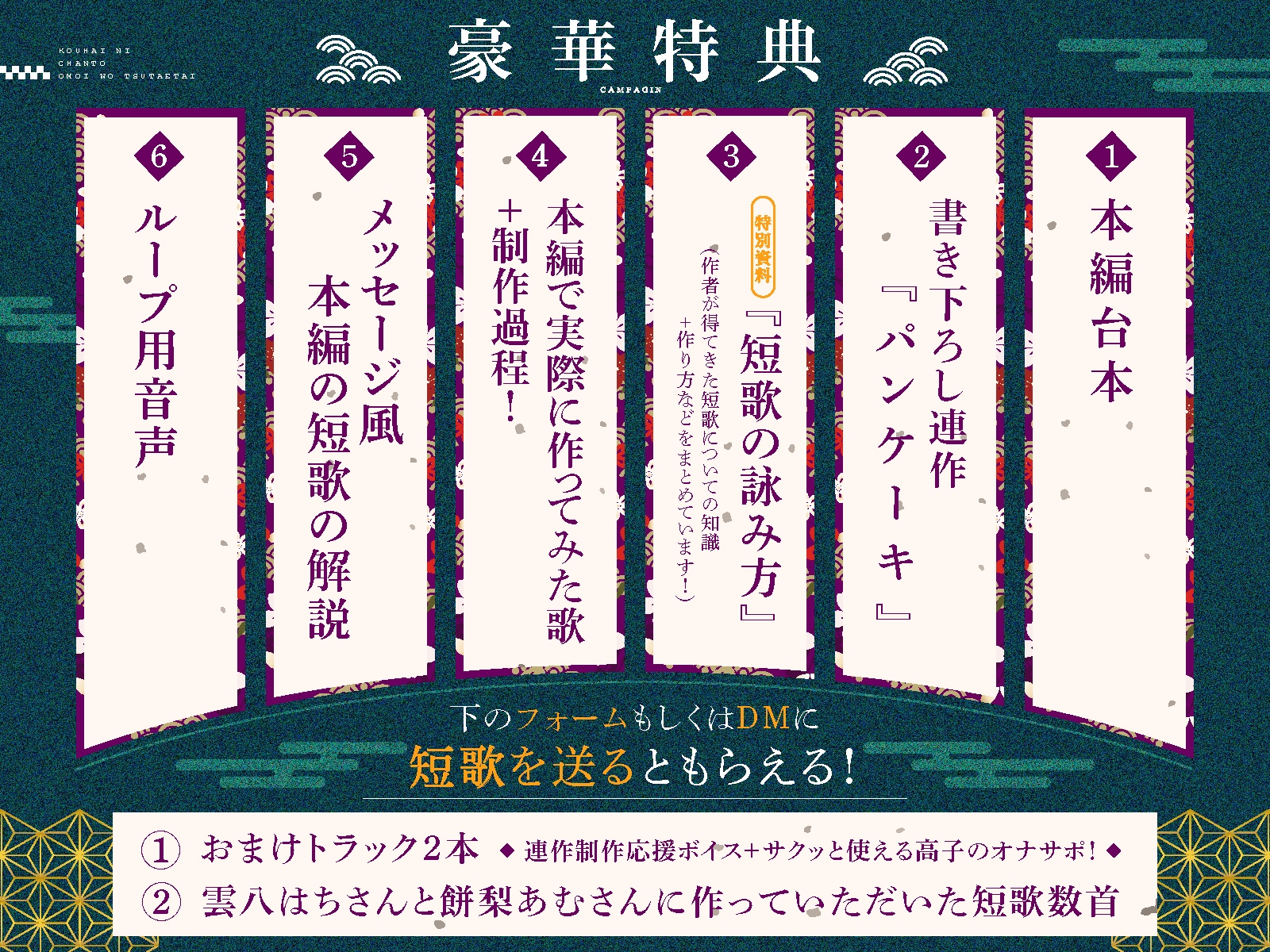 ・フォーム、もしくはXのDMから短歌を送るともらえる!