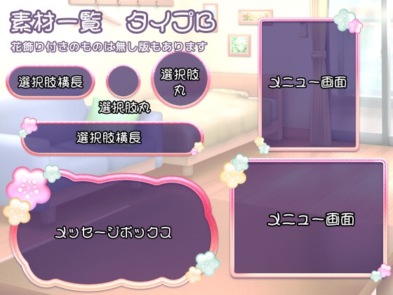 ![【素材】2000年代ギャルゲ風 枠/ボタン素材(おまけ立ち絵付き) [aiGame] 【素材】2000年代ギャルゲ風 枠/ボタン素材(おまけ立ち絵付き) [aiGame]](http://img.dlsite.jp/modpub/images2/parts_ana/RJ01539000/RJ01538371/03ad1b491dfbce0ff18b26baa62ae551.jpg)