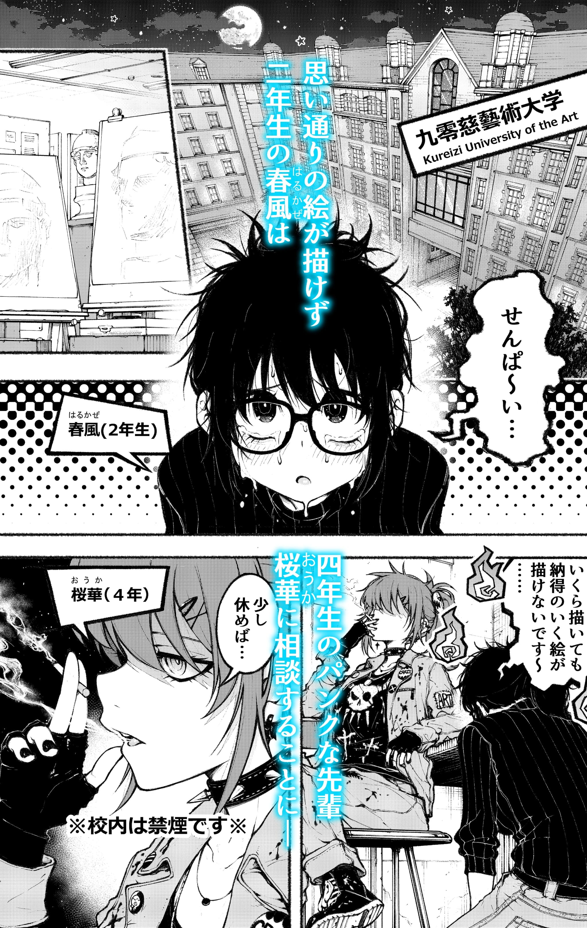とある藝術大学で春風(はるかぜ)は納得いく絵が描けず先輩の桜花(おうか)に助けを求める。