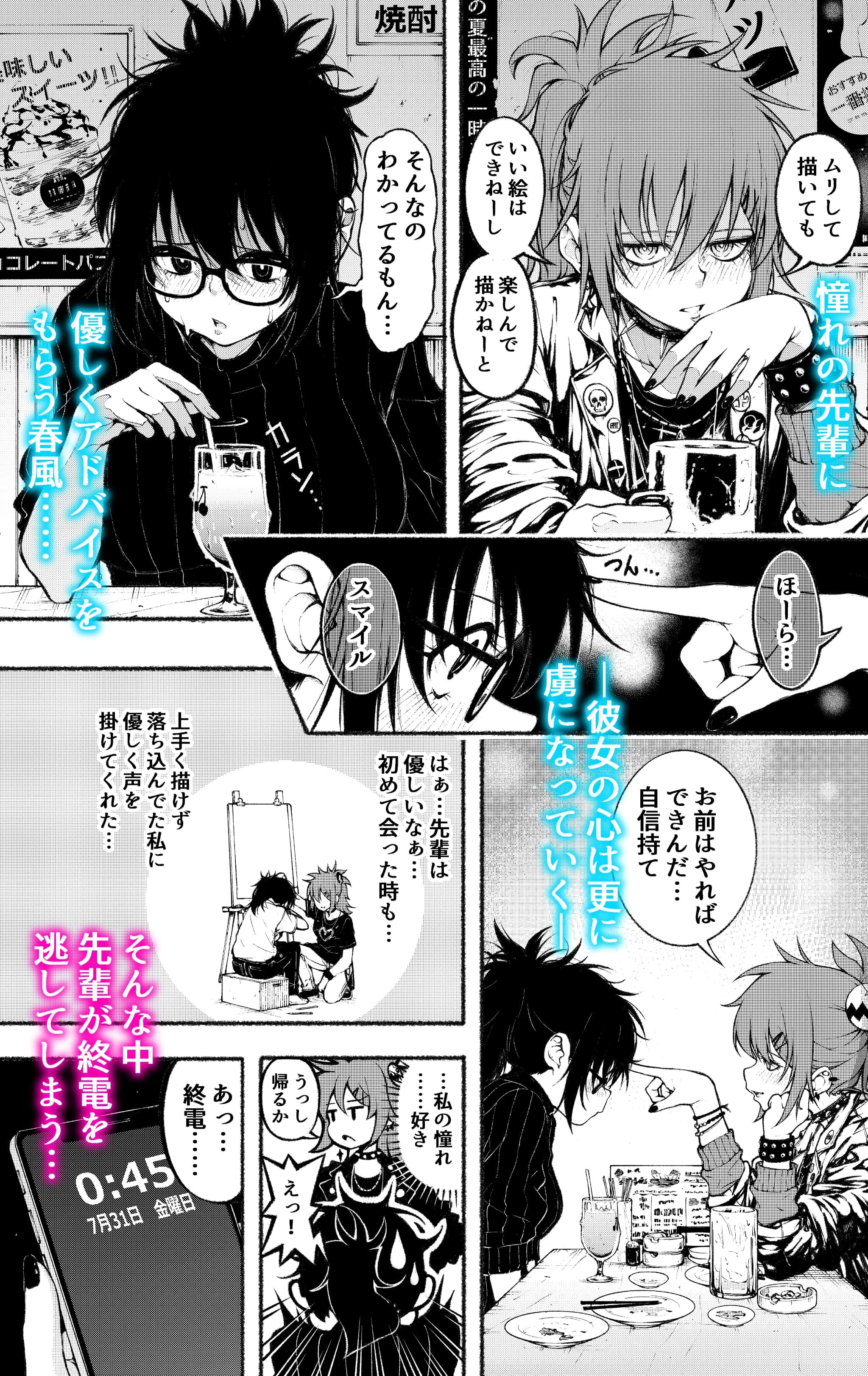 息抜きで桜花か飯に誘われ居酒屋へ行くことになるが、話が弾み桜花が終電をなくしてしまう。