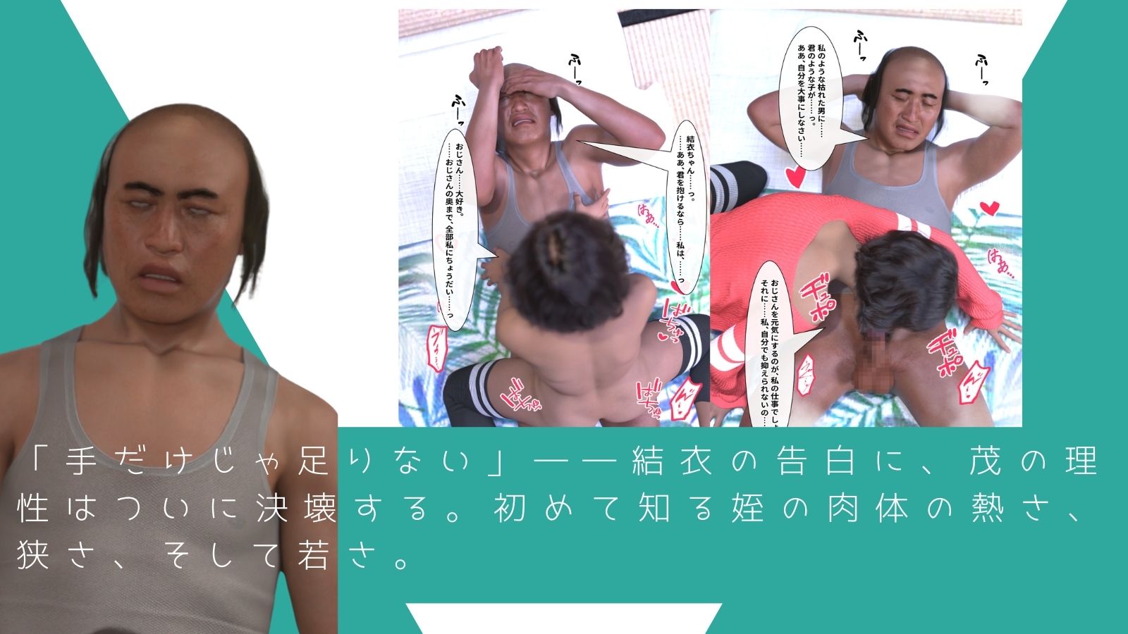 ◇収録内容 ・セリフ付き 35ページ ・セリフ無し差分 35ページ 叔父を元気にするための「リハビリ」は、ついに最後の一線を越えた。朝・昼・晩と繰り返される濃厚な交わり。申し訳なさに震える叔父と、彼を包み込み、より深くへと導く姪。若さと老いが混ざり合う、背徳の24時間。これは、ある叔父と姪が「家族」を捨て、「雄と雌」になった一日の記録である。