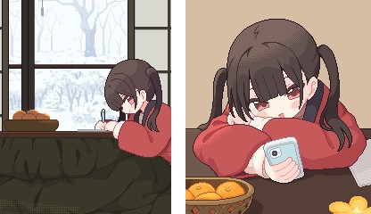 幅256pixel、高さ384pixelのドット絵で描いた、短編おさわりHシミュレーションADVゲーム! プレイ時間は10分前後と手軽にサクッと遊べる設計で、操作は全てマウスで完結します。 冬の暇な一日を妹とだらだら何気ない話をしたり、Hなことをしたりして過ごしましょう! ※※※生活シミュレーションではありません。その辺りはご注意ください!※※※