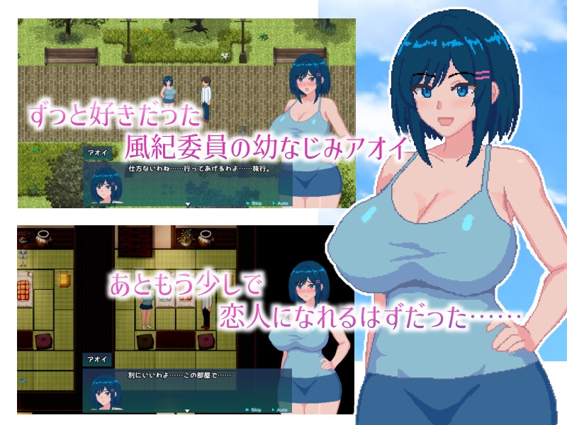 風紀委員の幼なじみアオイが、男達に卑怯な手段で迫られ、堕ちていく寝取られゲーです。