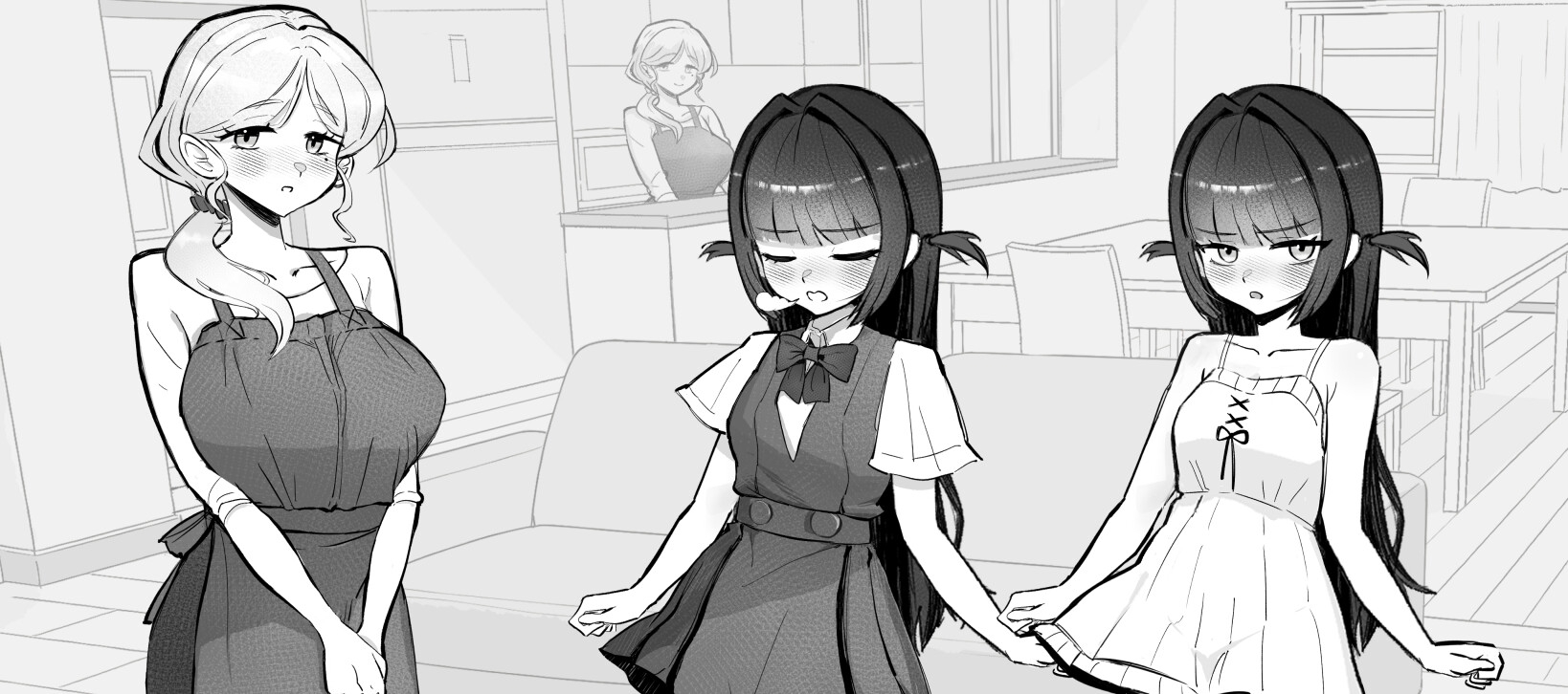 時にはお母さんが同じ場所に居ることも。いたずらがバレないように注意せよ! (だが、お母さんが居るスリルで、妹はより興奮しやすくなるようだ……)
