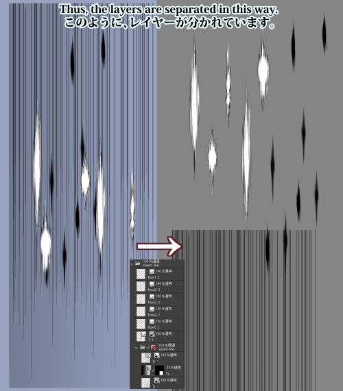 クリップスタジオで使える、モノトーンのスピード線の画像です。