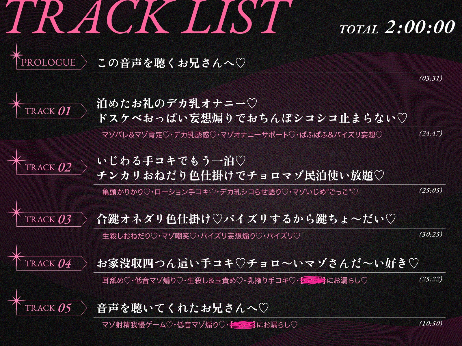 (耳舐め♡・低音マゾ煽り♡・生殺し&玉責め♡・乳搾り手コキ♡・【■■■】にお漏らし♡)