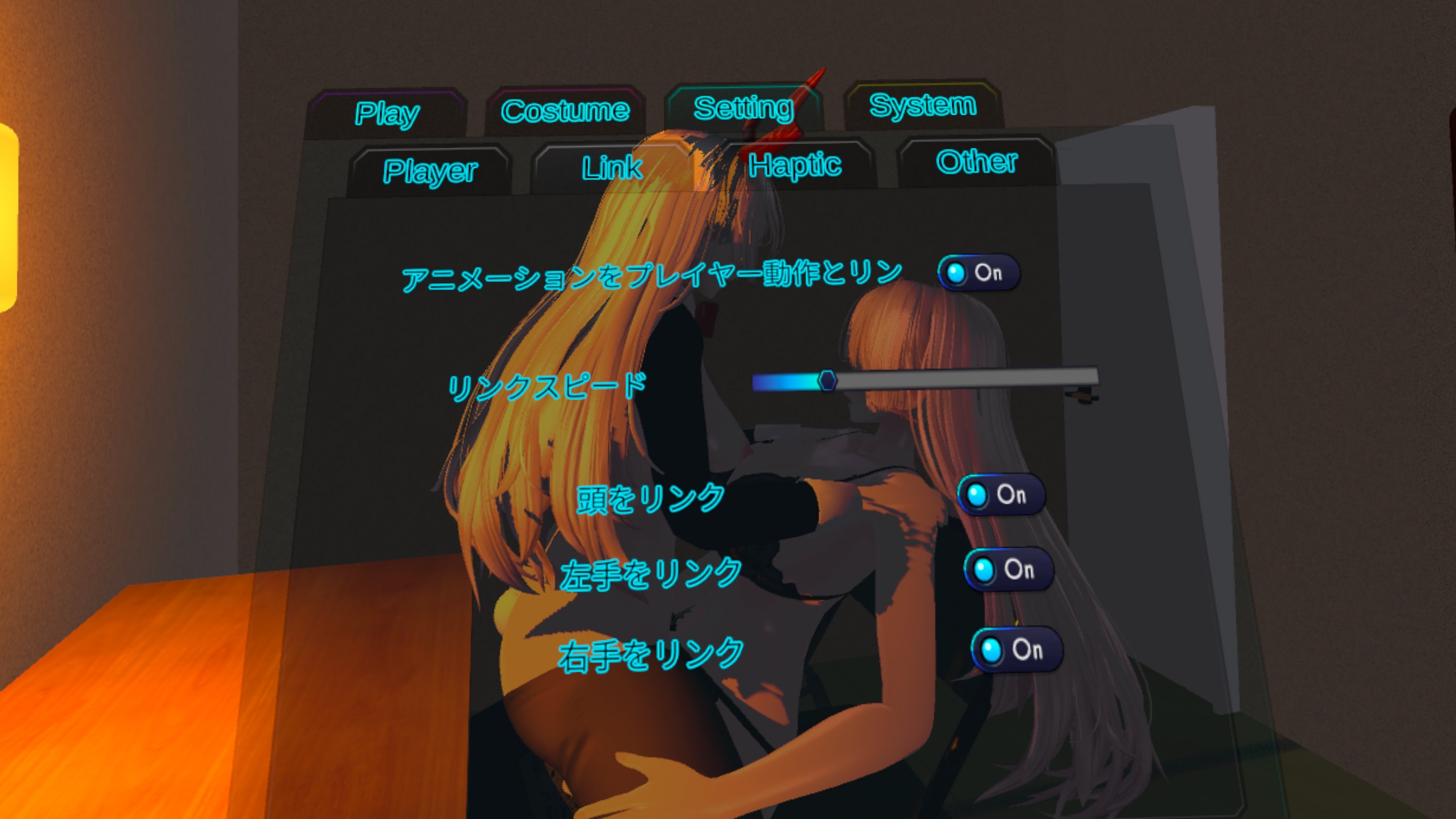 HUDに自分と相手の快楽度と、相手に自分がどういう刺激を与えているかが分かるメーターがあります。 エッチシーンによって、コントローラーの振動や、電動オナホールを使って相手に刺激を与えることができます。