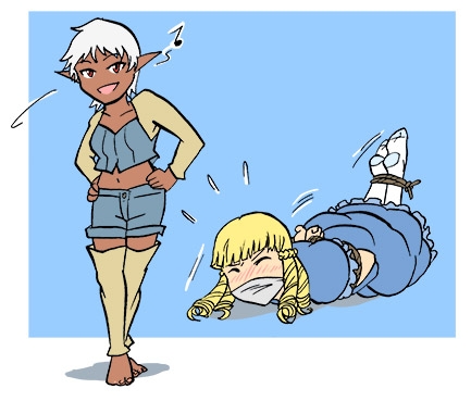 After the events of Fantasy Frontier comic, princess Elvina and elf brat Serena enjoys some relax…or not? New adventures in illustrated format for the fantasy heroines!