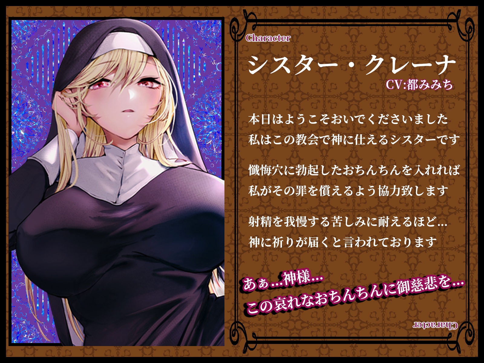 教会に勤めるシスター・クレーナは、懺悔の手伝いを行う為、