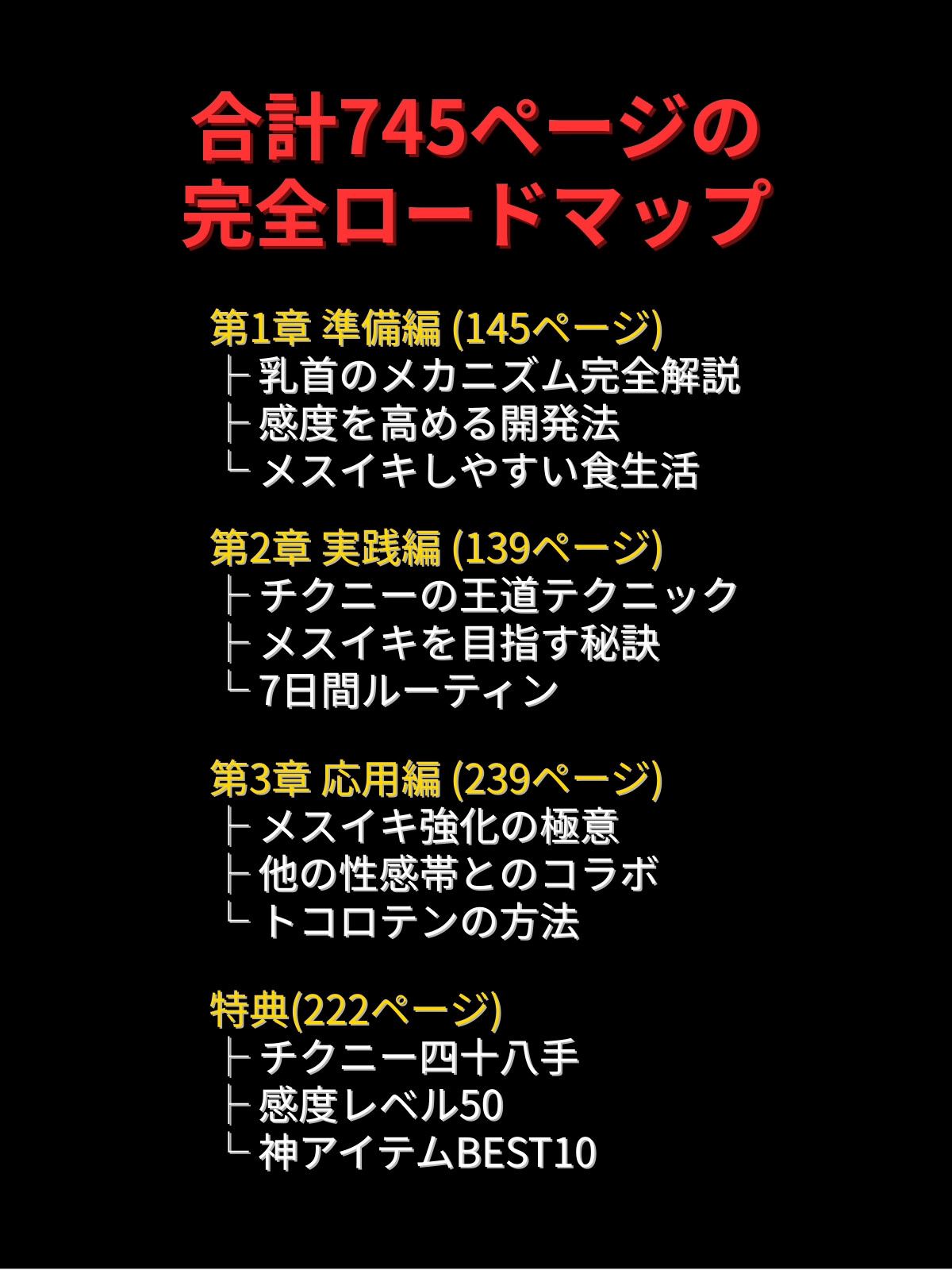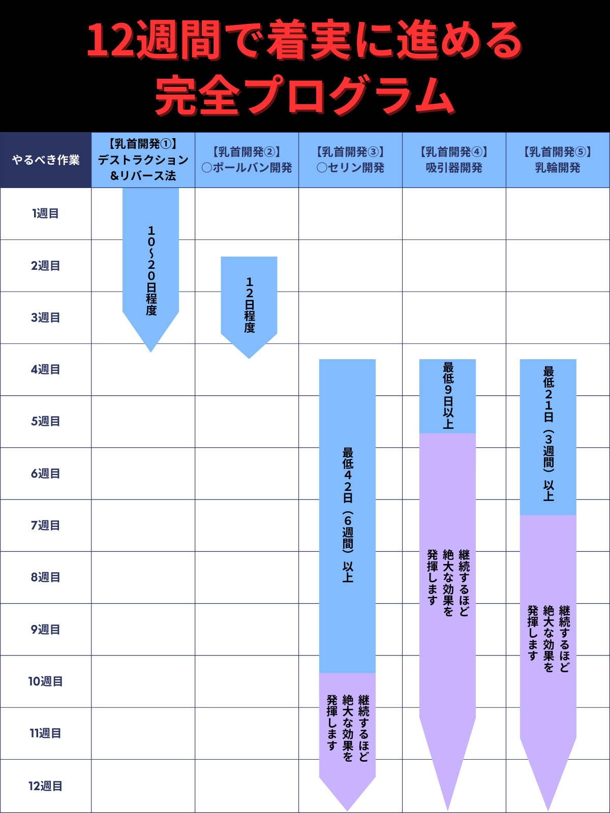 この教科書では、12週間のステップバイステッププログラムで、あなたの乳首を確実にメスイキできるレベルまで開発します。