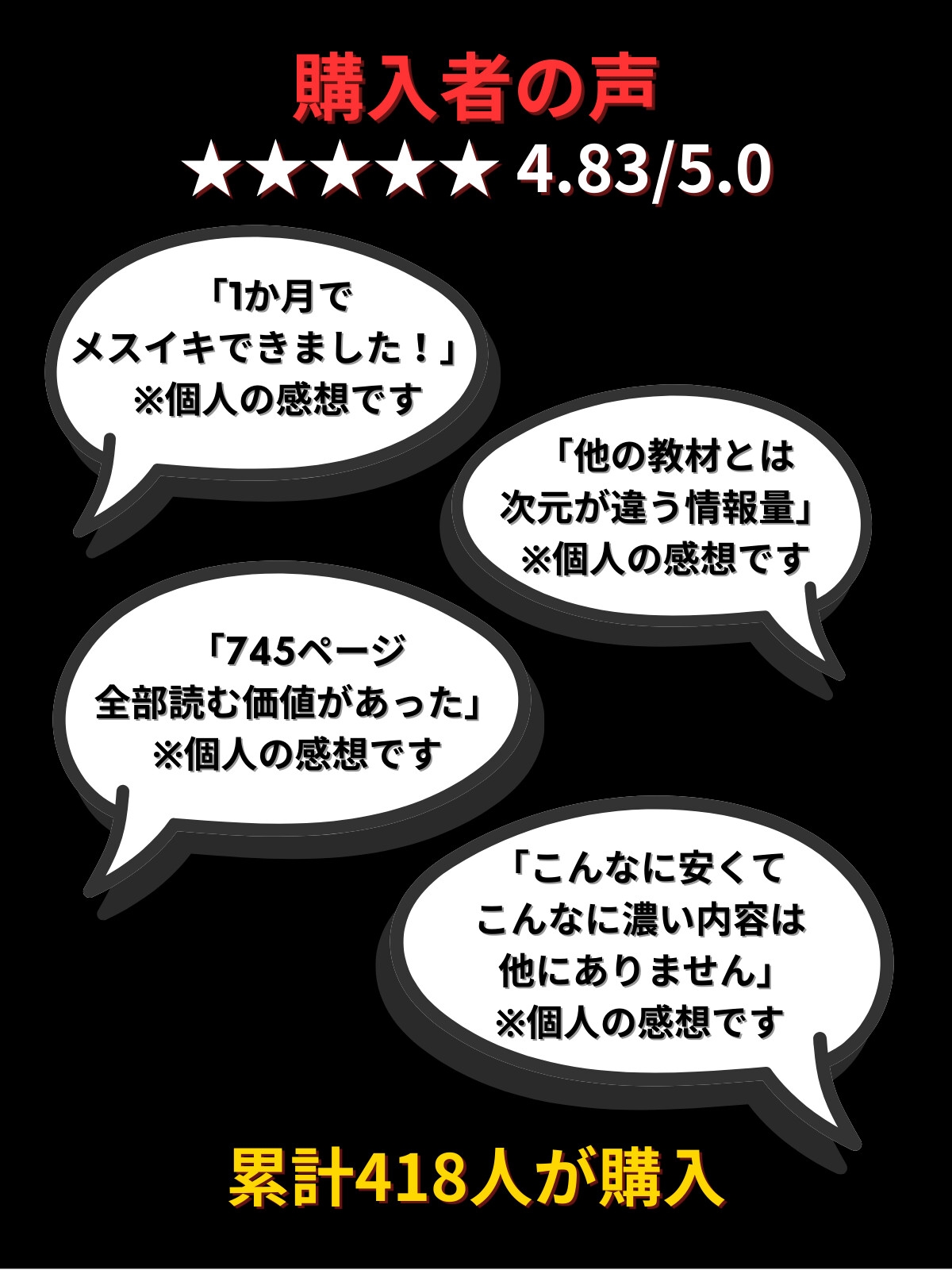 そのため、コンテンツ通りにしっかりと行動してもらえたら、「誰でも」「簡単に」メスイキできます。