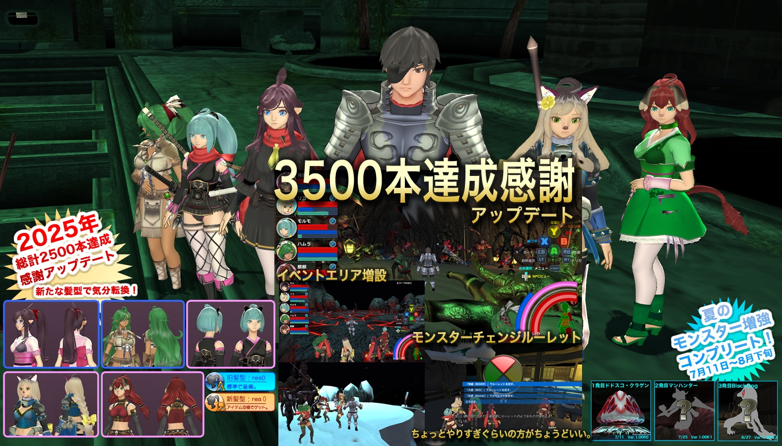 - 大きめのアップデートです。新エリア追加(新システム)あとモンスターの追加等です。