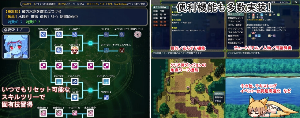 ・スキルツリーで固有技習得、豊富な装備欄でお好み戦術