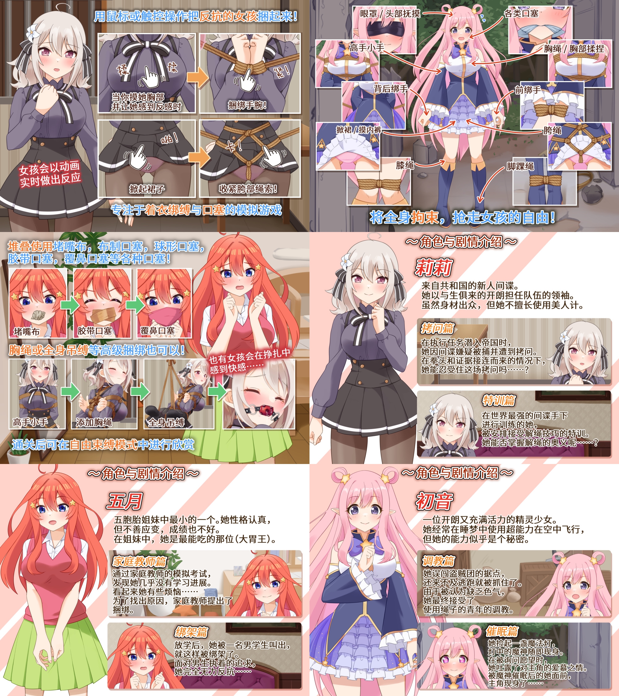 一款专注于穿衣紧缚与猿轭的模拟游戏。