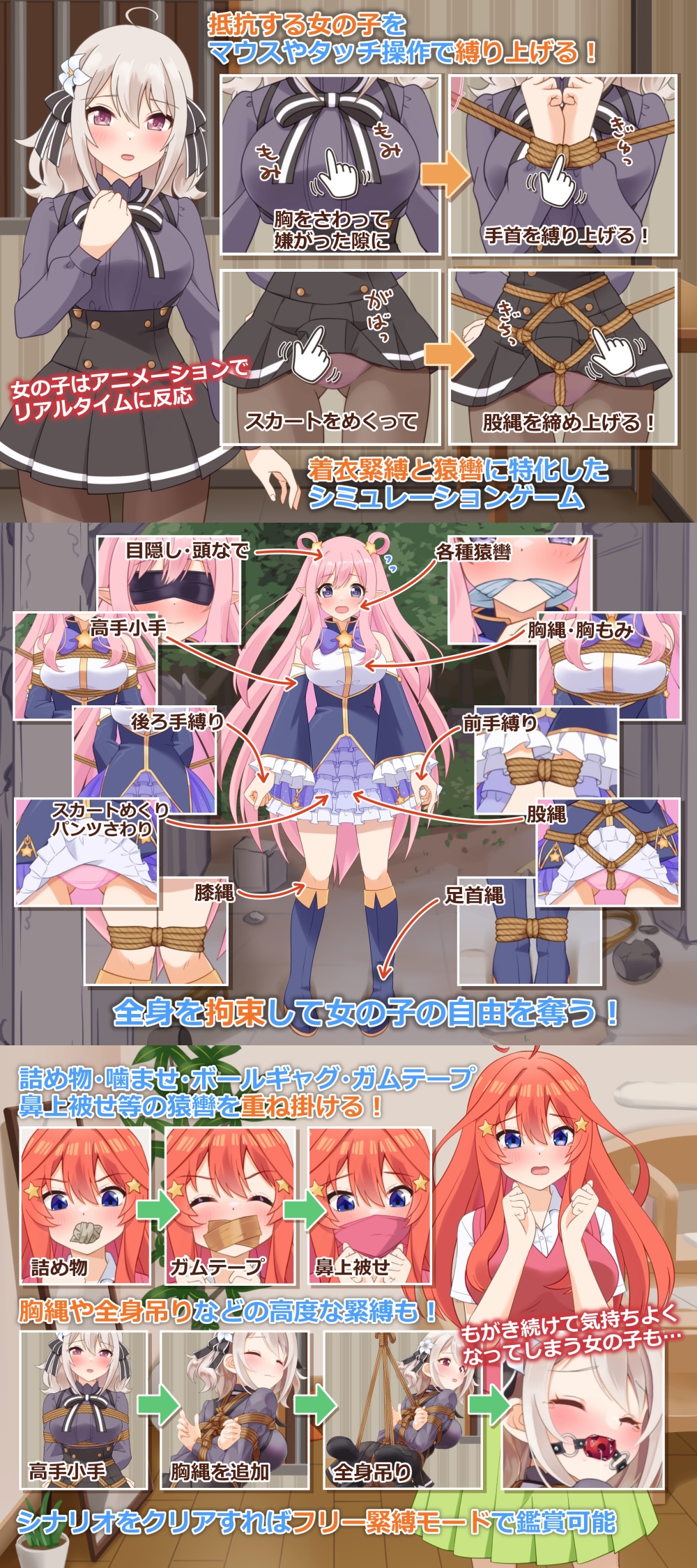 着衣緊縛と猿轡に特化したシミュレーションゲーム。
