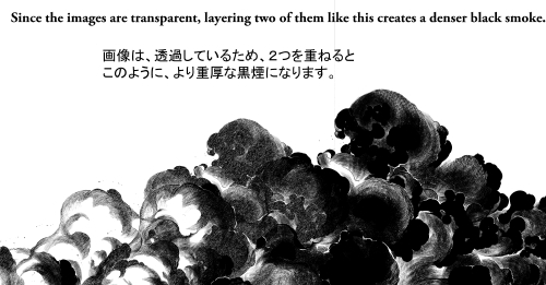 重ねて使うといろいろなパターンの黒煙に変化させられ、