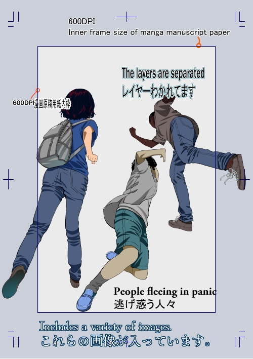 大きなサイズの逃げ惑うモブキャラが3体あります。