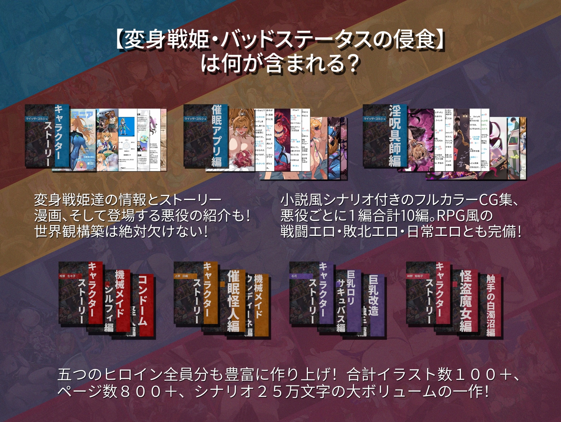 トラウマ、スケベな後遺症、異常体質など、様々なバッドステータス(バステ・バッドステート)が少女たちの戦いを、またその後に待つ日常をピンク色に彩ります。