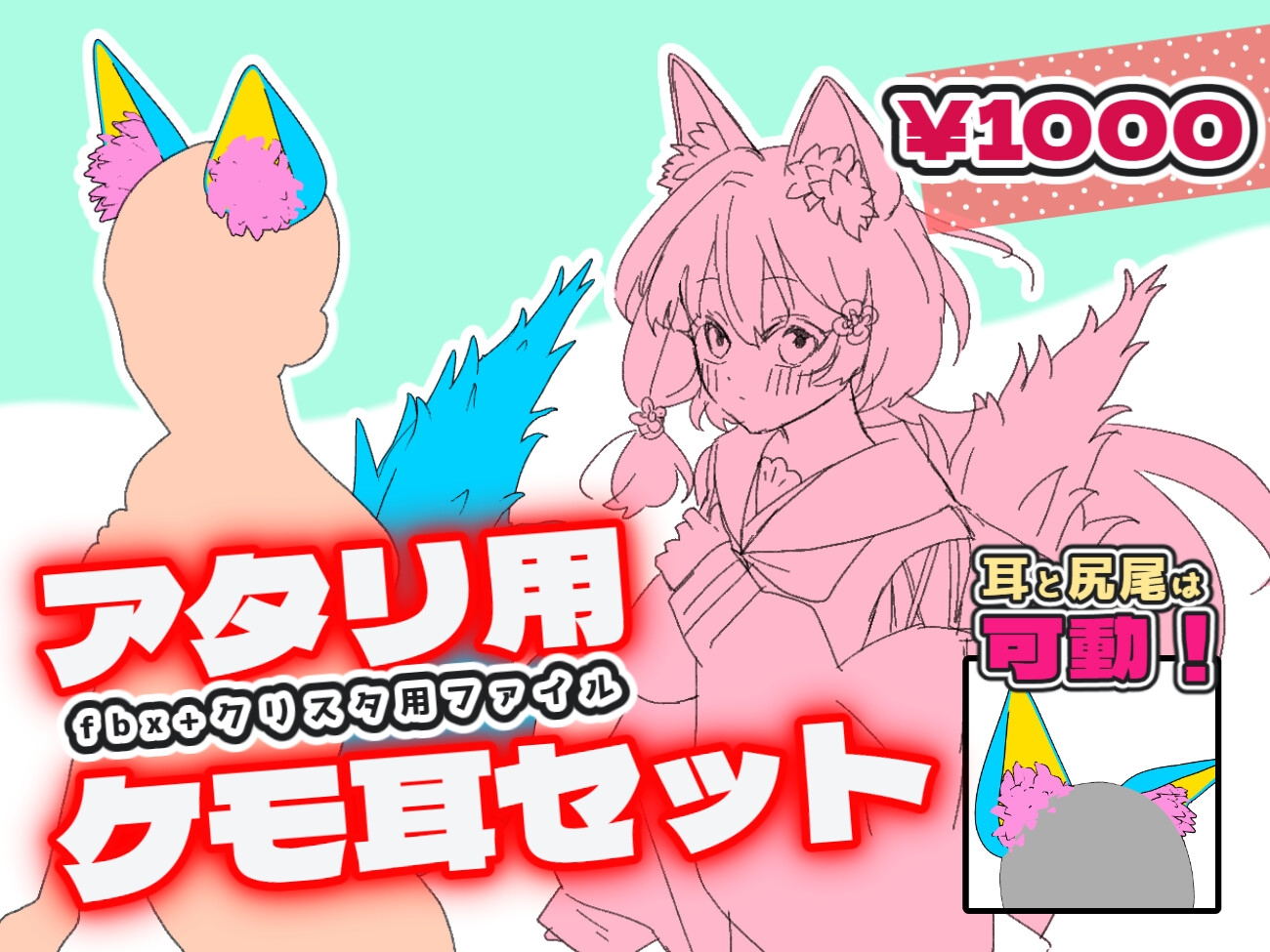 【3D】可動ケモミミ+もふもふ尻尾セット【クリスタデータあり】