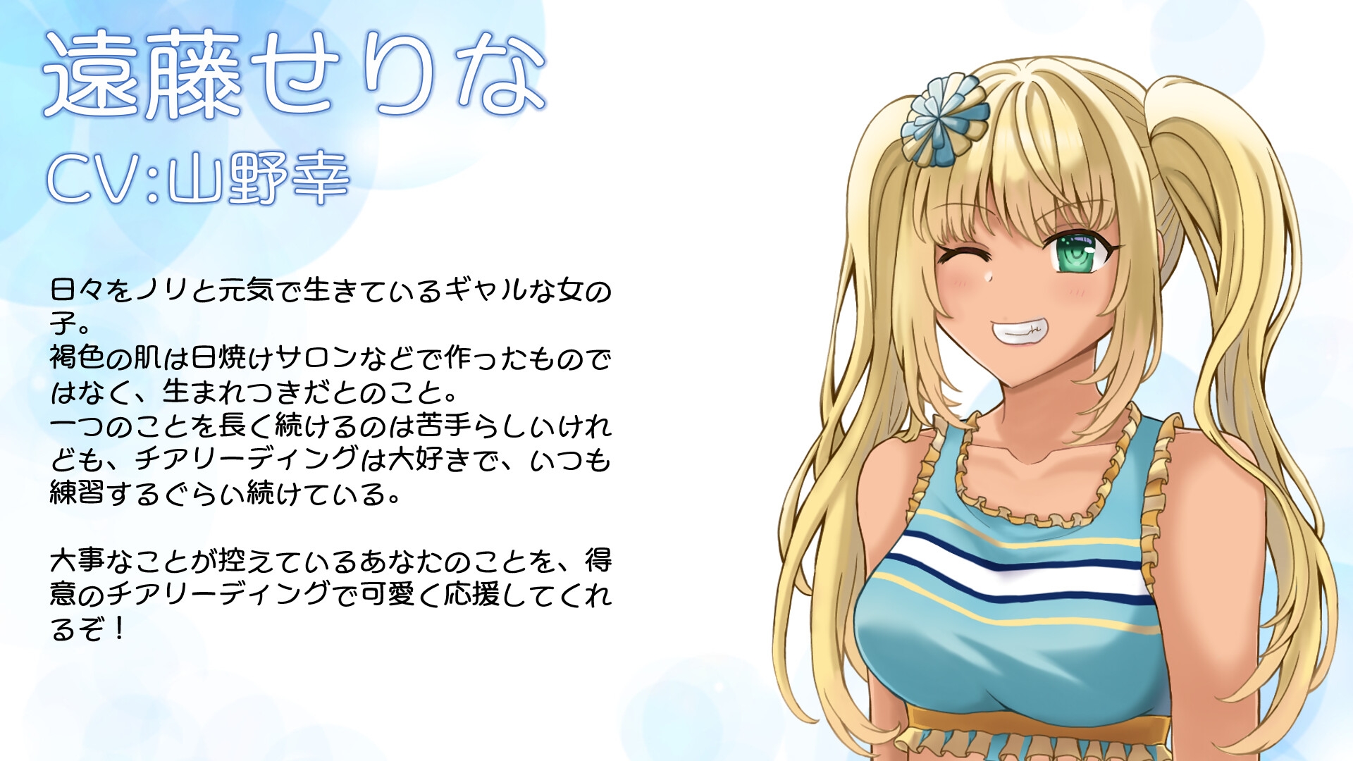 大事なことが控えているあなたのことを、得意のチアリーディングで可愛く応援してくれるぞ! -