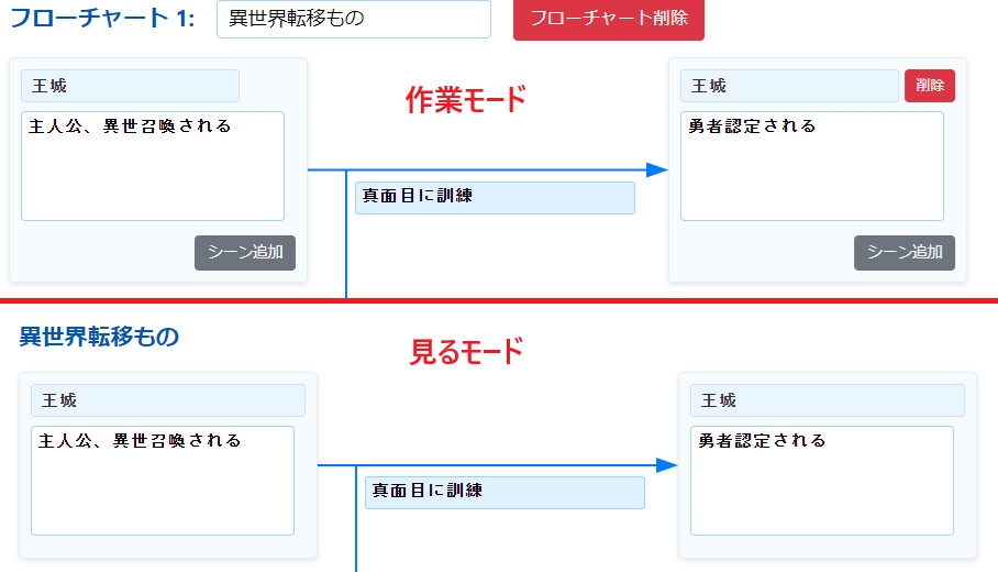 共通ルート、聖女ルート、勇者ルートなどルート別に管理できます。