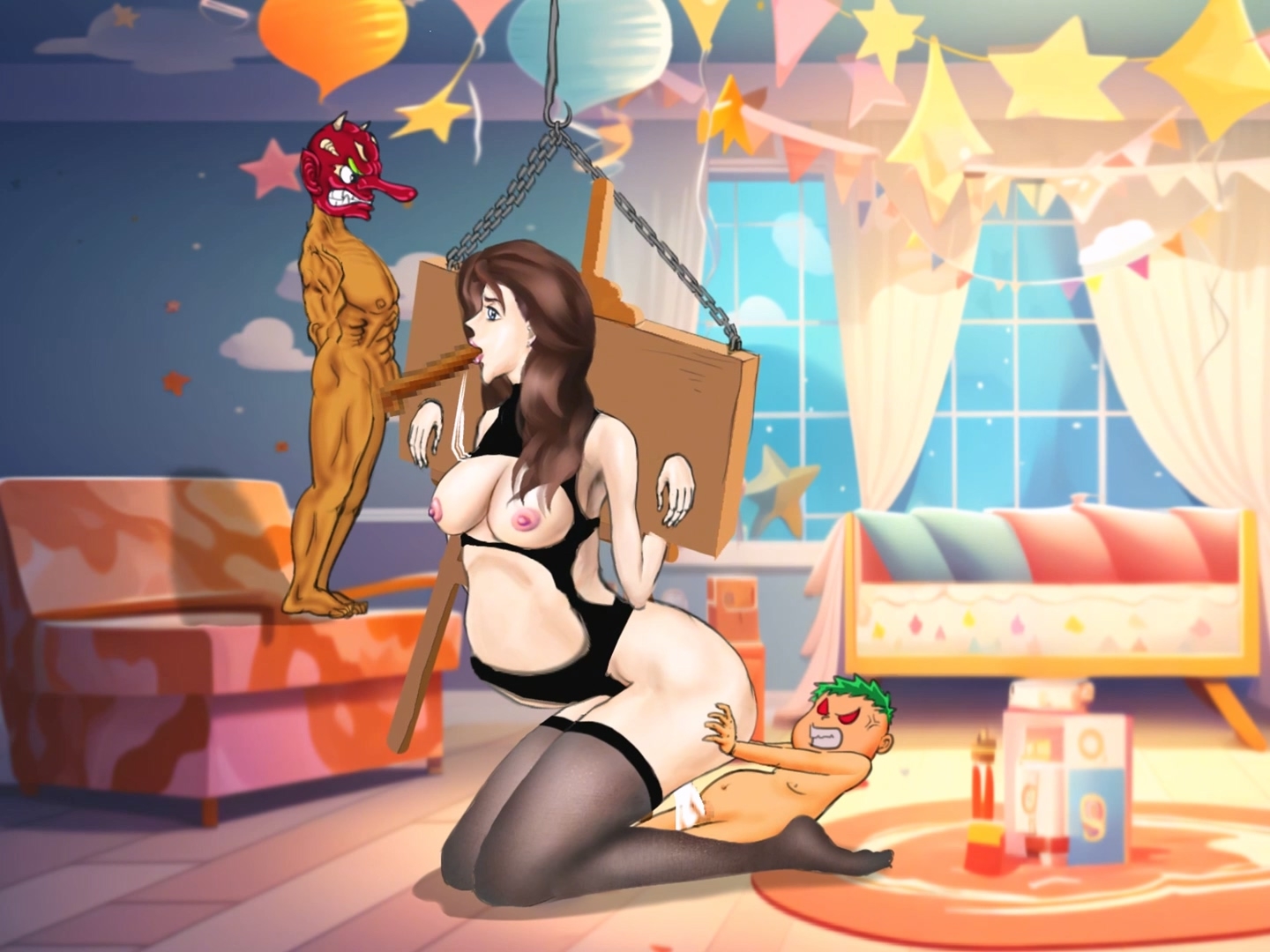 • 黒ストッキングの奴○少女がクラブで二人の兄弟に犯される [妊娠中の美巨人]