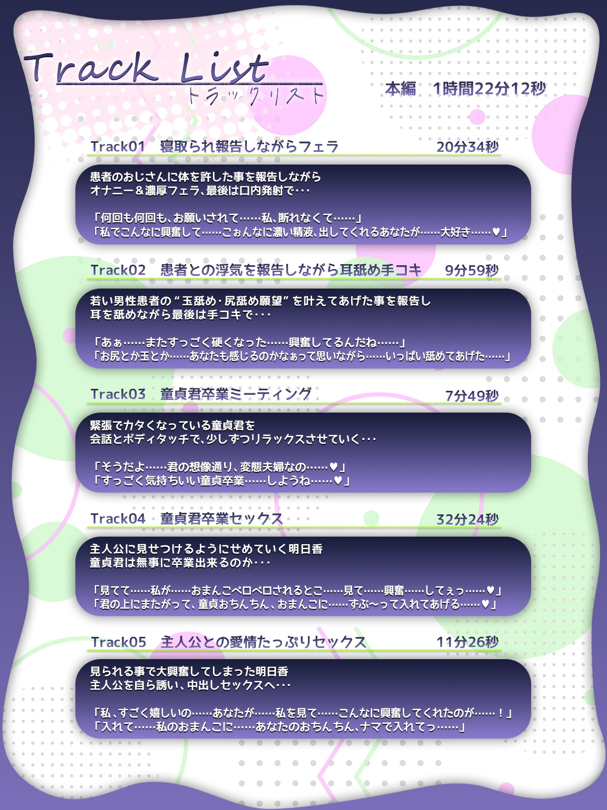 Track02 患者との浮気を報告しながら耳舐め手コキ(09分59秒)