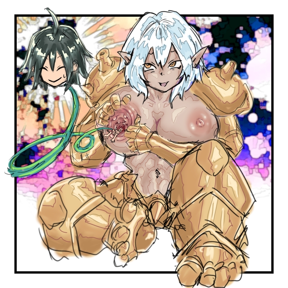今回は、第一巻に収録されている膨腹娘代表として【新約の超獣姫スギタ・エトセトラ】と巨大娘代用として【勇者プロトの伝説 キャラクター図鑑 第零巻】に収録されている【魔族の巨大娘オネオン・ショタロット】のバトルを描く回です。