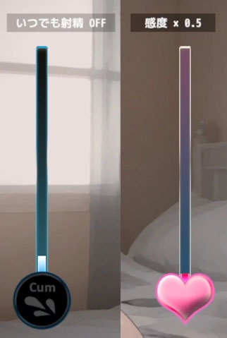 画面上の設定項目はオーガズムメーター(快感度を示すハートマークのメーター)に応じて自動で変化したり解除されたりしていきますが、ご自分で自由に設定することもできます。