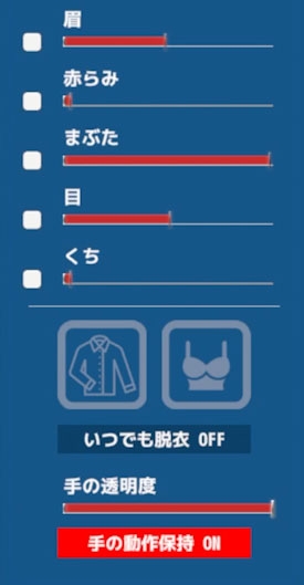 基本的にはオーガズムメーターに応じて自動で変化しますが、各項目のチェックボックスをオンすることでお気に入りの表情に設定できます。