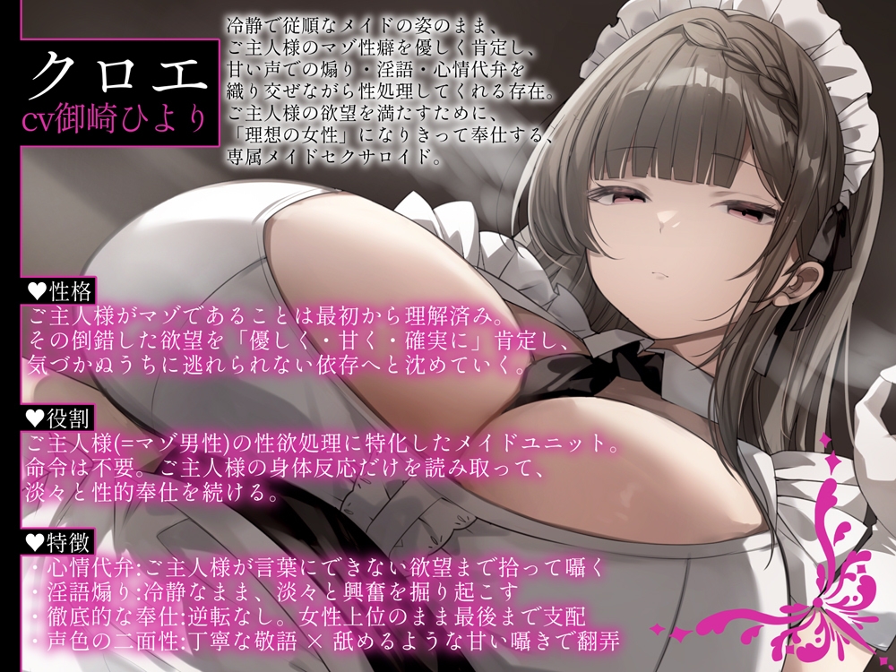 無表情で淡々と奉仕する専属メイドセクサロイド「クロエ」(cv御崎ひより)