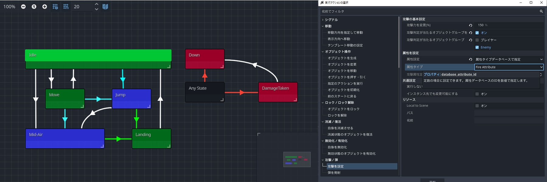本作は従来作とは異なり、本格的な制作機能をもった超高性能ツールですが、FSM型のヴィジュアルスクリプトを採用することで、ツクールシリーズらしく、プログラム知識無しでも幅広いジャンルのゲームが制作できるように設計されています。