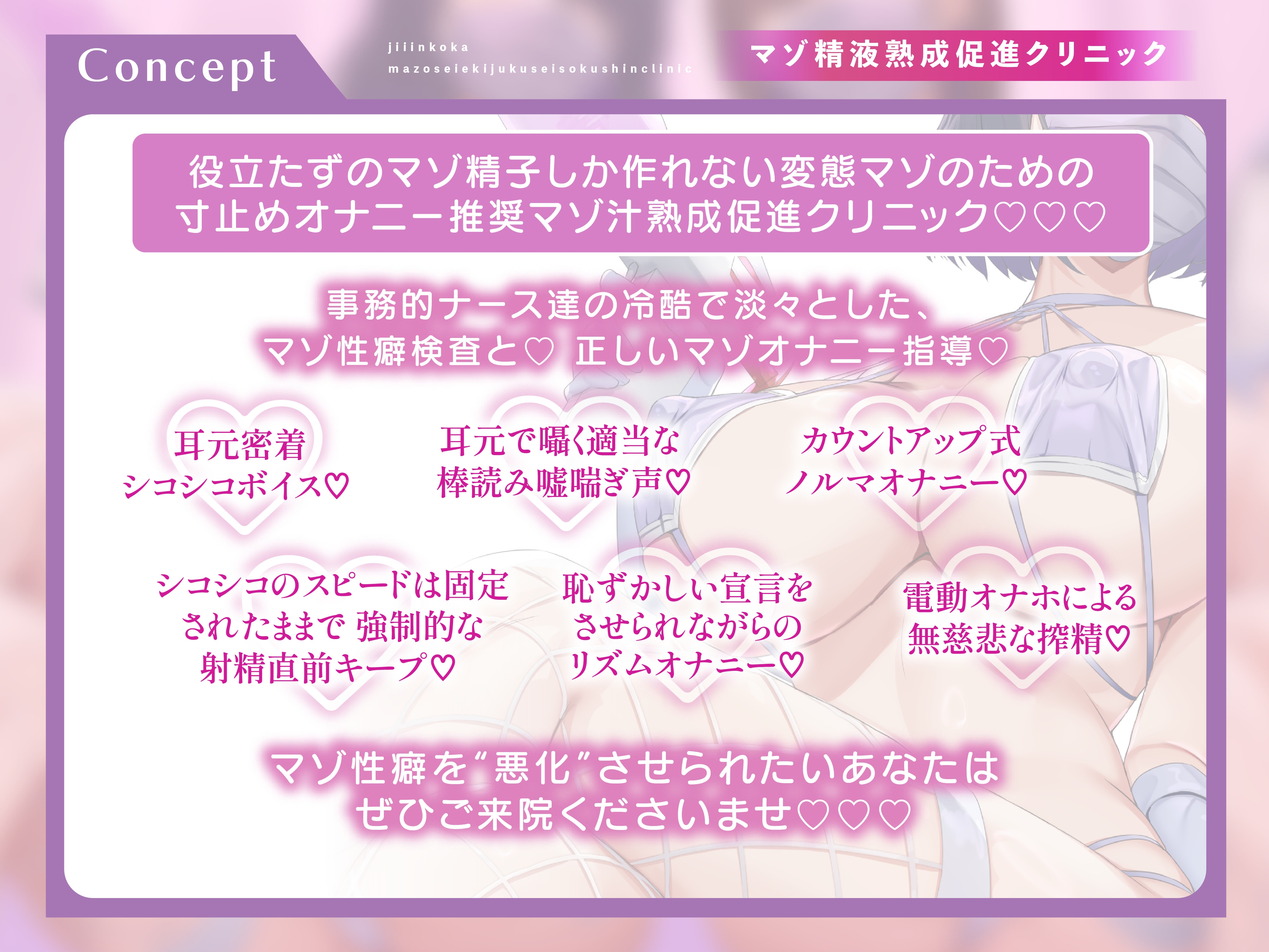 ![マゾ精液熟成促進クリニック自慰淫行科~冷酷でドスケベな事務的ナース達の射精禁止マゾオナニーサポート~【シコシコボイス・嘘喘ぎ・勃起我慢オナニー・宣言オナニー】 [shikotamatyarenji] マゾ精液熟成促進クリニック自慰淫行科~冷酷でドスケベな事務的ナース達の射精禁止マゾオナニーサポート~【シコシコボイス・嘘喘ぎ・勃起我慢オナニー・宣言オナニー】 [shikotamatyarenji]](http://img.dlsite.jp/modpub/images2/parts/RJ01528000/RJ01527698/9c239d874a412e183574d37a8e41a11c.jpg)