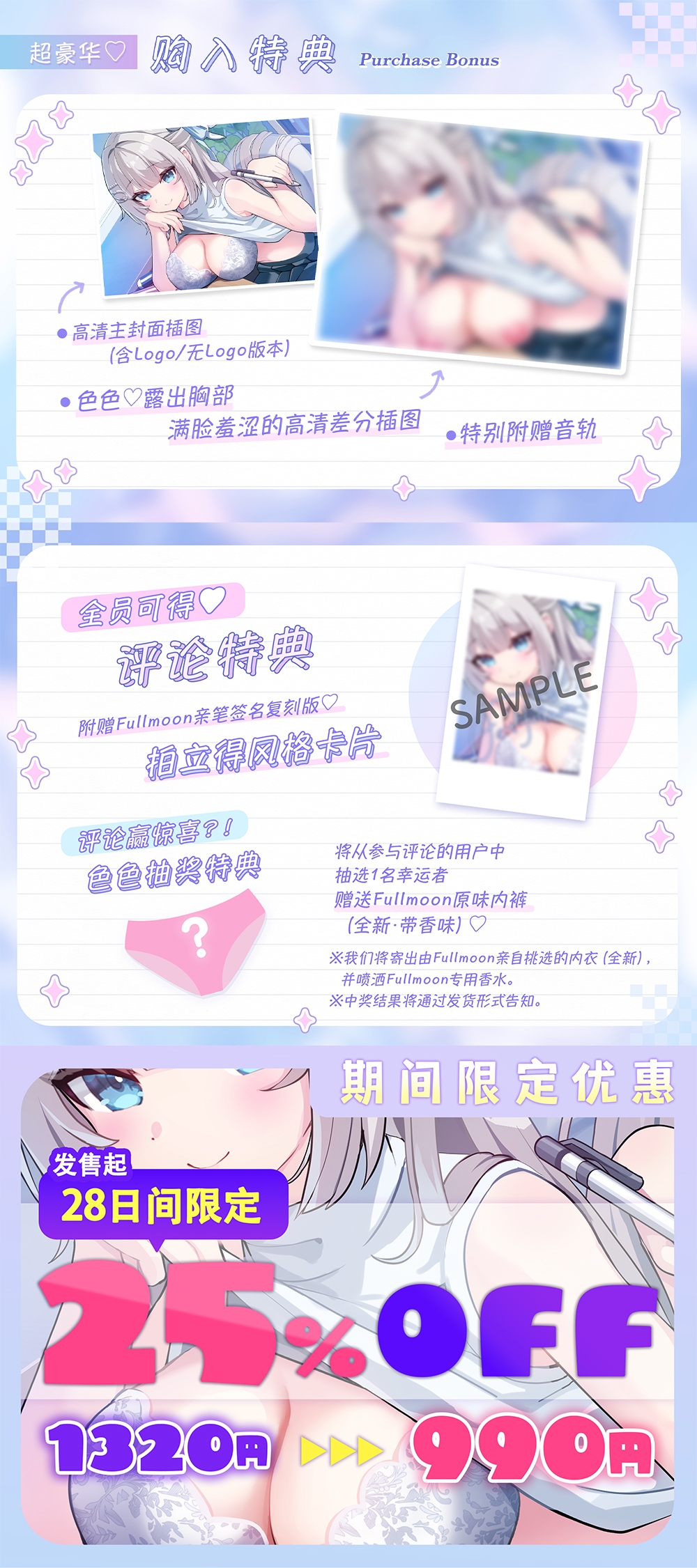 ※我们将寄出由Fullmoon亲自挑选的内衣(全新),并喷洒Fullmoon专用香水。
