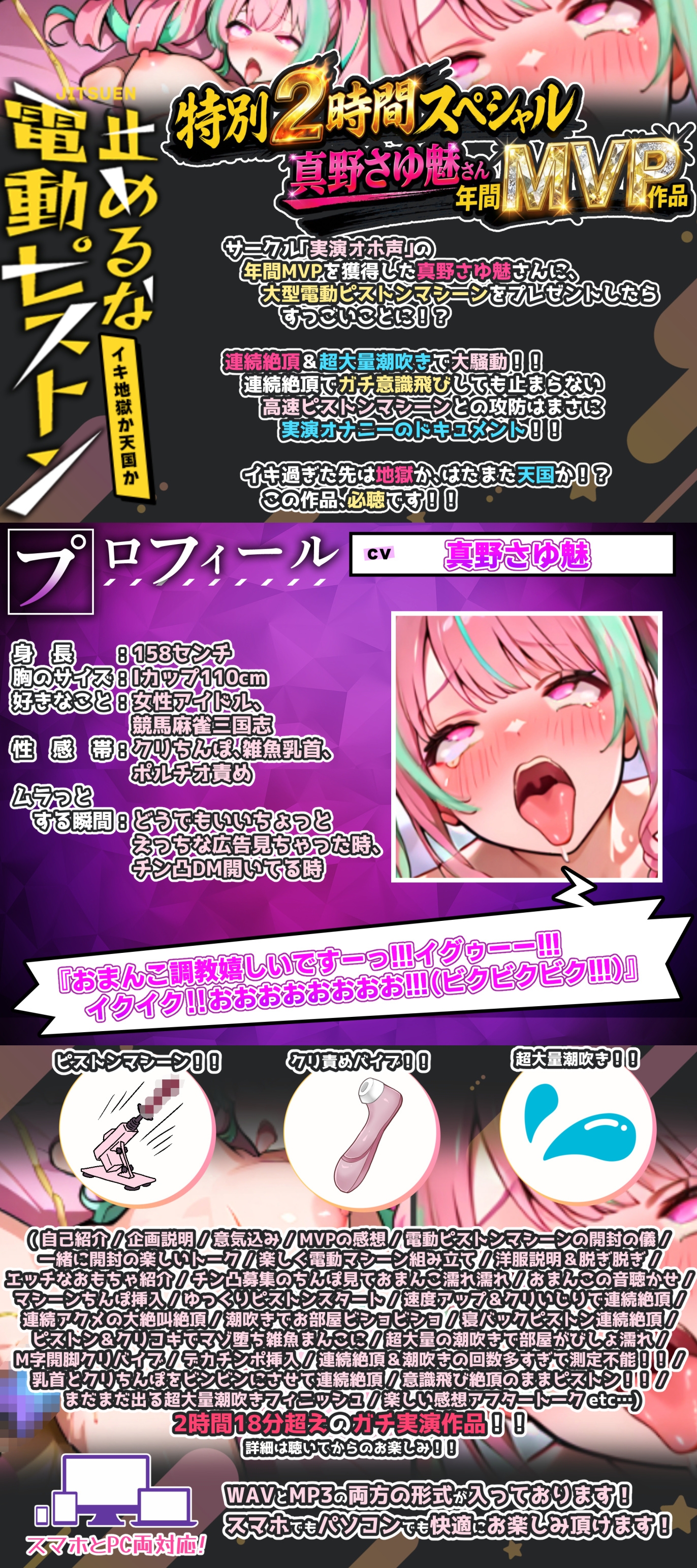 ![【実演オナニー×止めるな!電動ピストン!】特別2時間スペシャル!!本気絶頂狂い&大量潮吹き!!意識飛び中に追い討ちピストン!!【真野さゆ魅さん年間MVP記念作品】 [実演オホ声] 【実演オナニー×止めるな!電動ピストン!】特別2時間スペシャル!!本気絶頂狂い&大量潮吹き!!意識飛び中に追い討ちピストン!!【真野さゆ魅さん年間MVP記念作品】 [実演オホ声]](http://img.dlsite.jp/modpub/images2/parts/RJ01534000/RJ01533275/579cc67f9d91e8445972a393a50ee612.jpg)