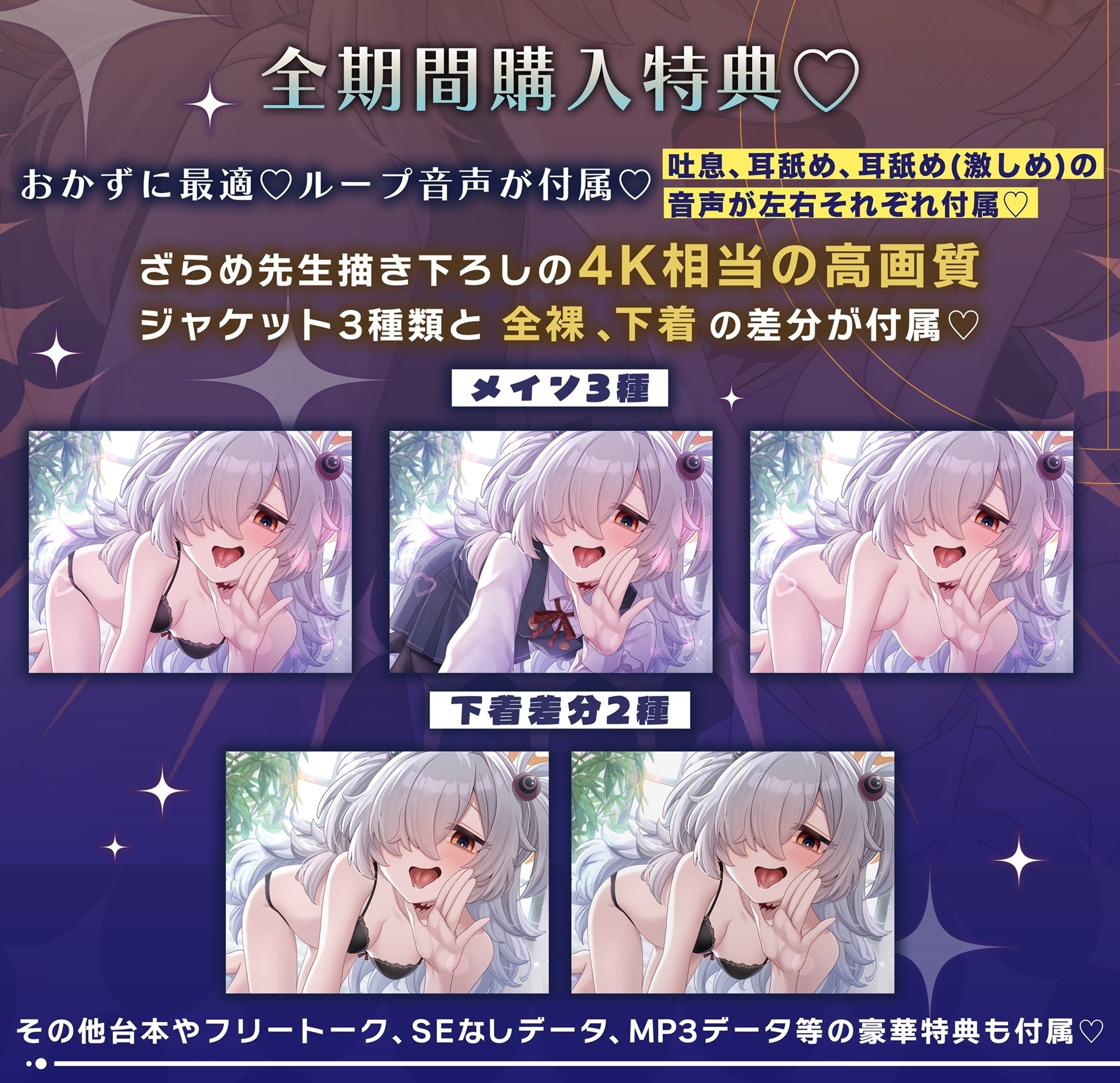 今回は人気の高い耳舐めや吐息オンリーのトラックもおまけとしてご用意しております♡