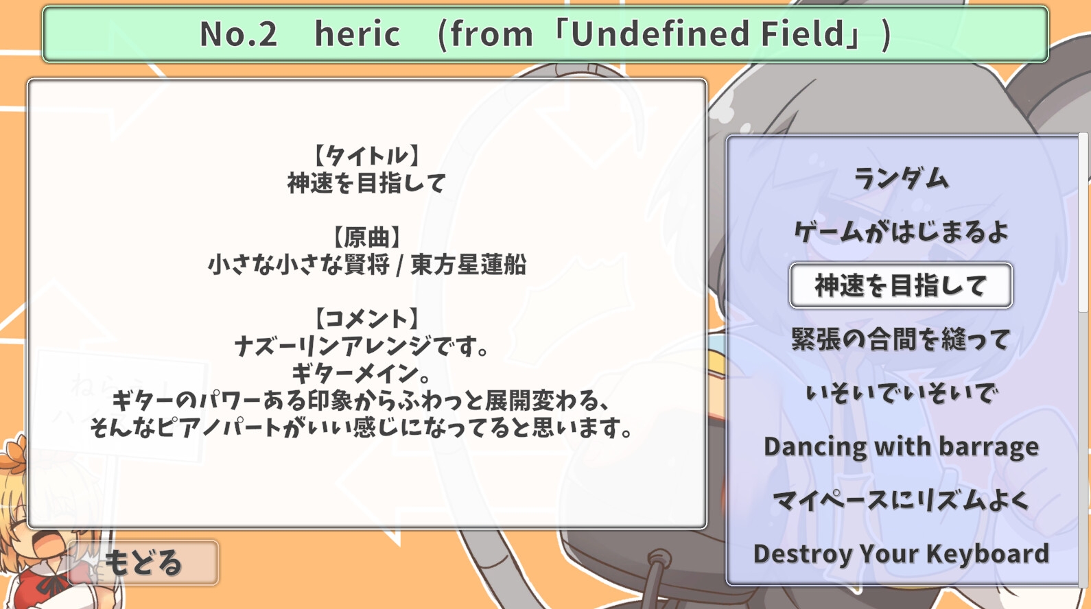 東方連打幻想祭(Touhou Rhythm of Fantasy)トラックリスト