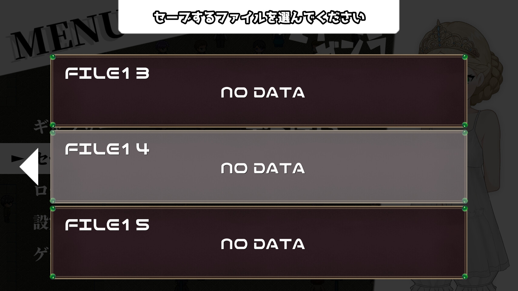 マップでの自由行動時、いつでも呼び出せます。エロステータスや立ち絵、シンプルな選択肢を表示。