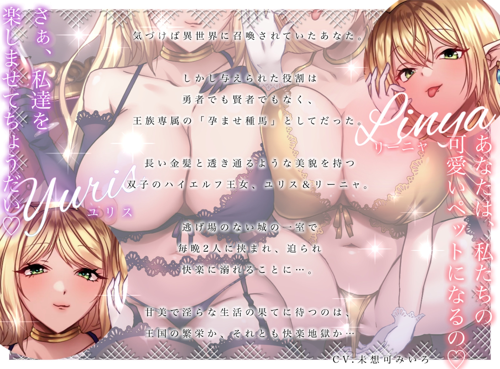 20分間双子ハイエルフ王女に耳舐めされながら、Wフェラ・騎乗位・正常位・キス・手マンで3P子作りHする音声