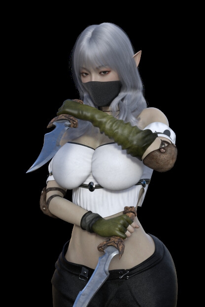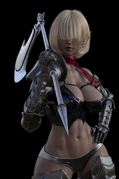 All Night Elves are formidable warriors. She too wields a massive axe befitting her physique, mowing down foes.