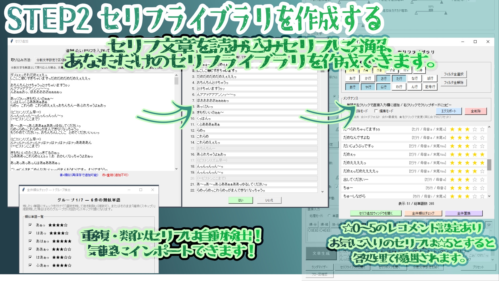 喘ぎ声ジェネレーターのカスタマイズ性とセリフ管理機能を融合させ、