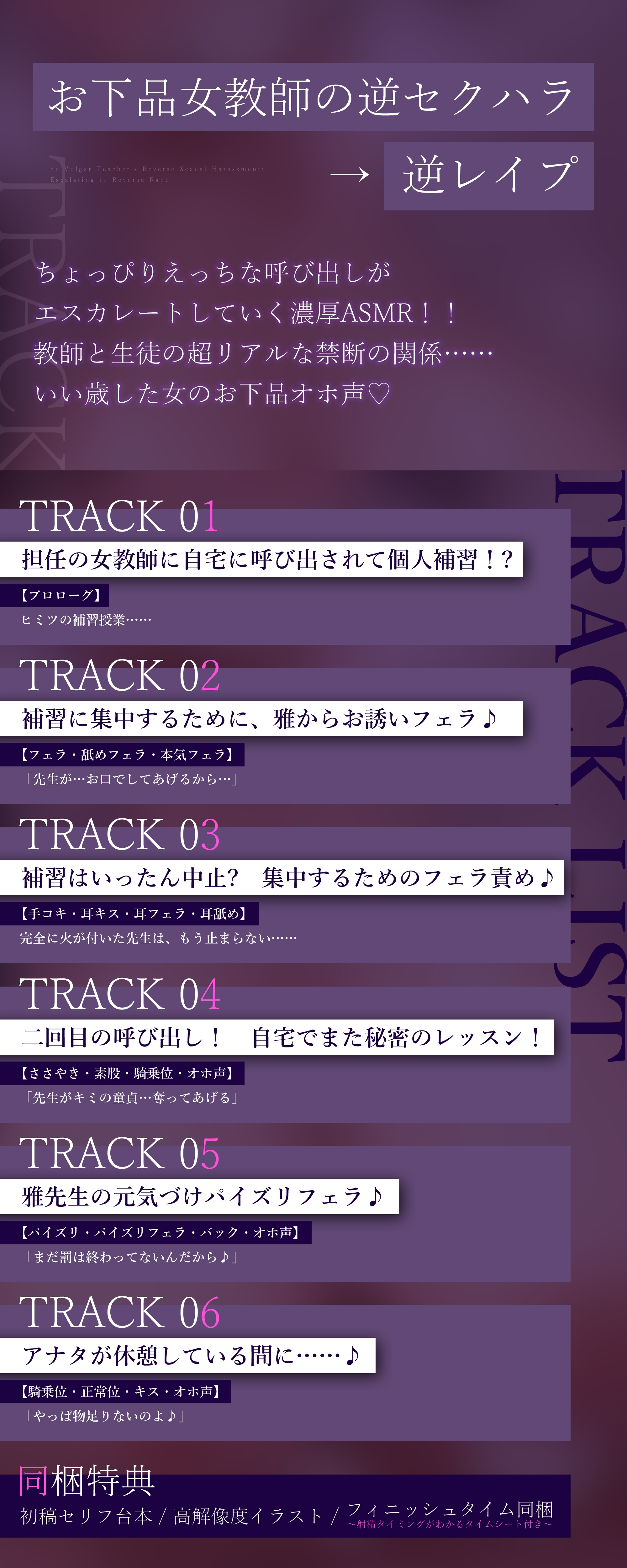 実はアナタのことを狙っていたエッチな女教師に襲われる音声を105分たっぷり収録♪